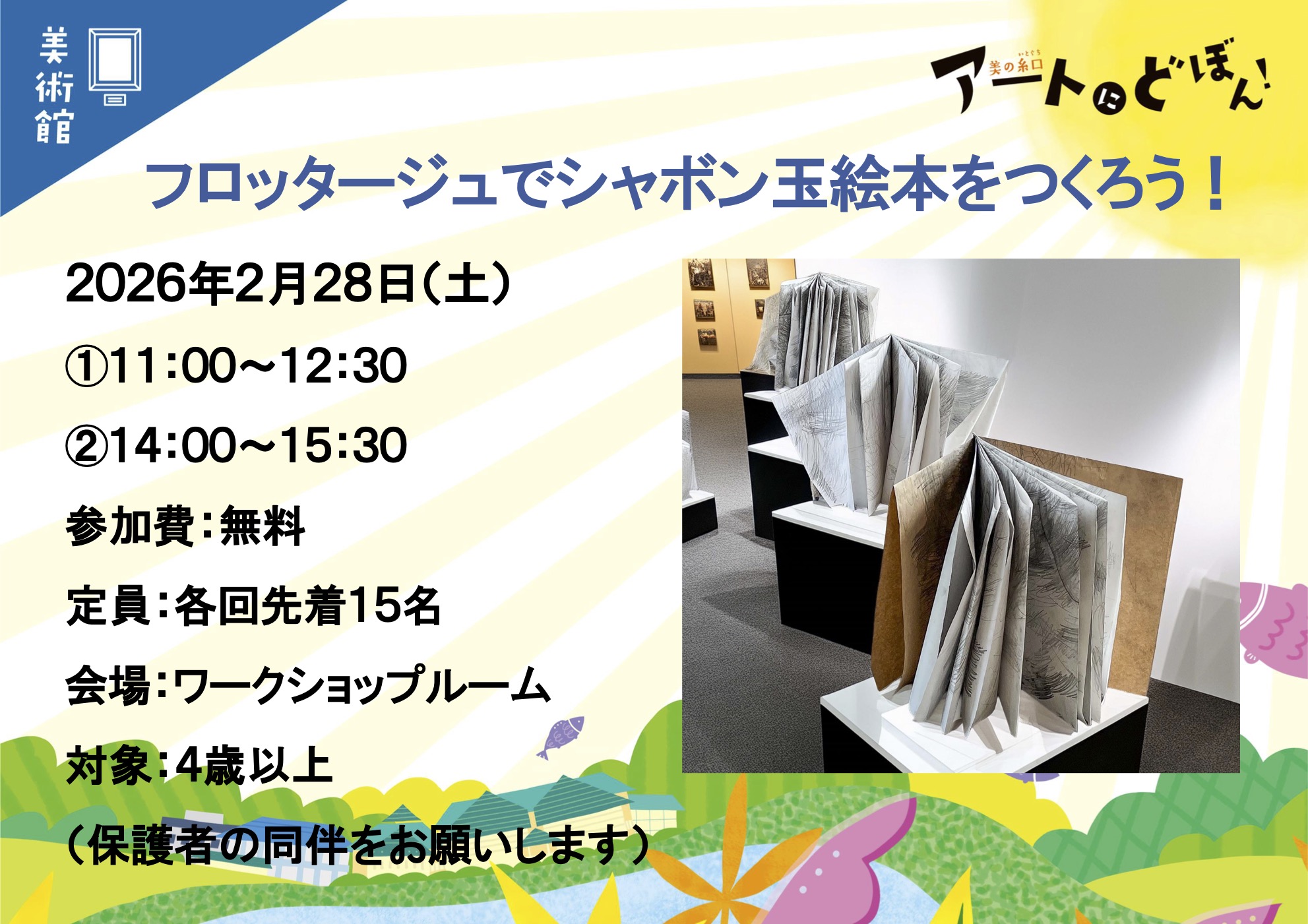 アートにどぼん!「フロッタージュでシャボン玉絵本をつくろう!」