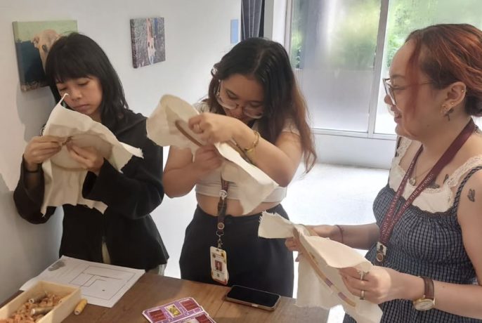 キュンチョメと一緒に、キュンチョメの作品に関連した刺繍作品を作ってみませんか?