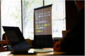 第一部ではUDトークのスクリーン投影を実施。第二部のワークショップはスタッフが隣に着席し、グループ内の発言についてパソコンでの要約筆記を行いました。要約筆記については休憩時間中に見やすいフォントサイズを聞き取って調整しました。UDトークについては初めて体験したとのことで、希望者が所属する施設でも導入したいとのことでした。